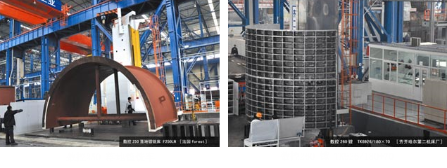 冷加工:擁有8×20米七軸五聯(lián)動(dòng)龍門移動(dòng)式數(shù)控銑車復(fù)合重型機(jī)床、6×2-10×20米各種數(shù)控龍門銑15臺(tái)、Φ160-Φ260各種數(shù)控銑鏜床21臺(tái)、Φ5-Φ20米各種大型數(shù)控立車16臺(tái)、Φ5-Φ14米滾齒機(jī)6臺(tái)、1米以上的弧齒銑齒機(jī)5臺(tái)、0.8-1.5米等各種磨齒機(jī)9臺(tái)、Φ2.5-Φ3.5米等各種插齒機(jī)3臺(tái)、Φ800臥式滾齒機(jī)、Φ800×5米外圓磨床、2米數(shù)控立磨及全自動(dòng)托輥生產(chǎn)線。