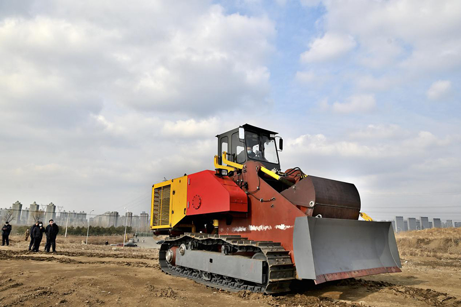 北方重工自主設計研發(fā)制造 國內首臺多功能履帶鏟運機試車成功