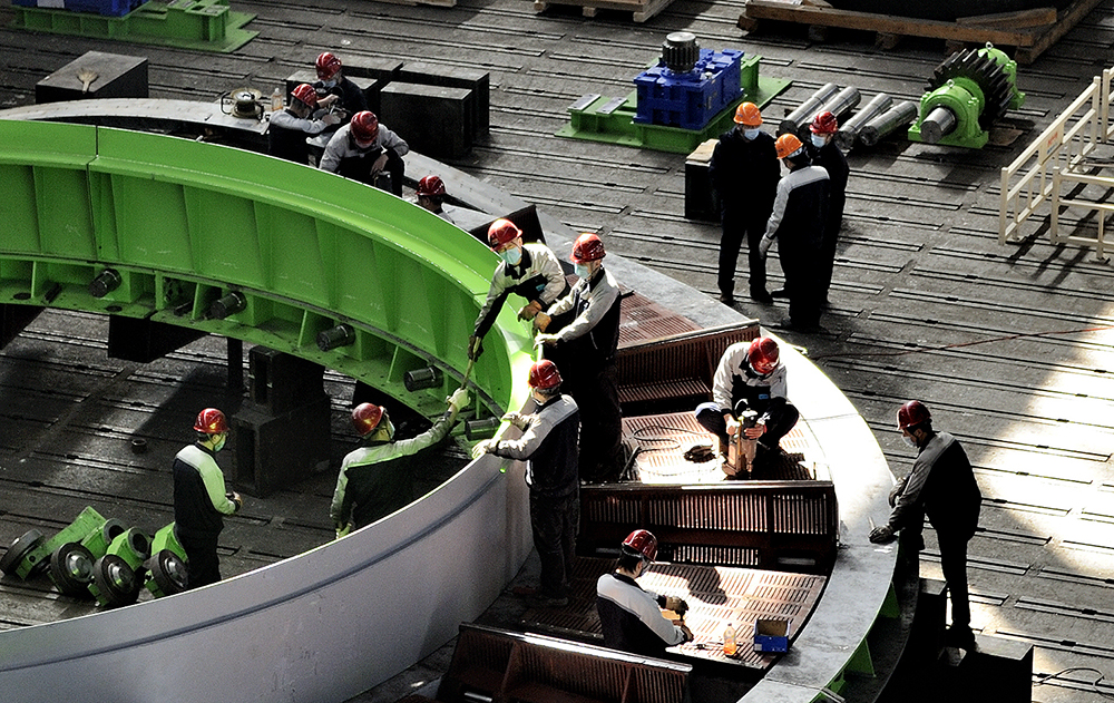 北方重工裝配車(chē)間環(huán)冷機(jī)裝配現(xiàn)場(chǎng)。(資料片)