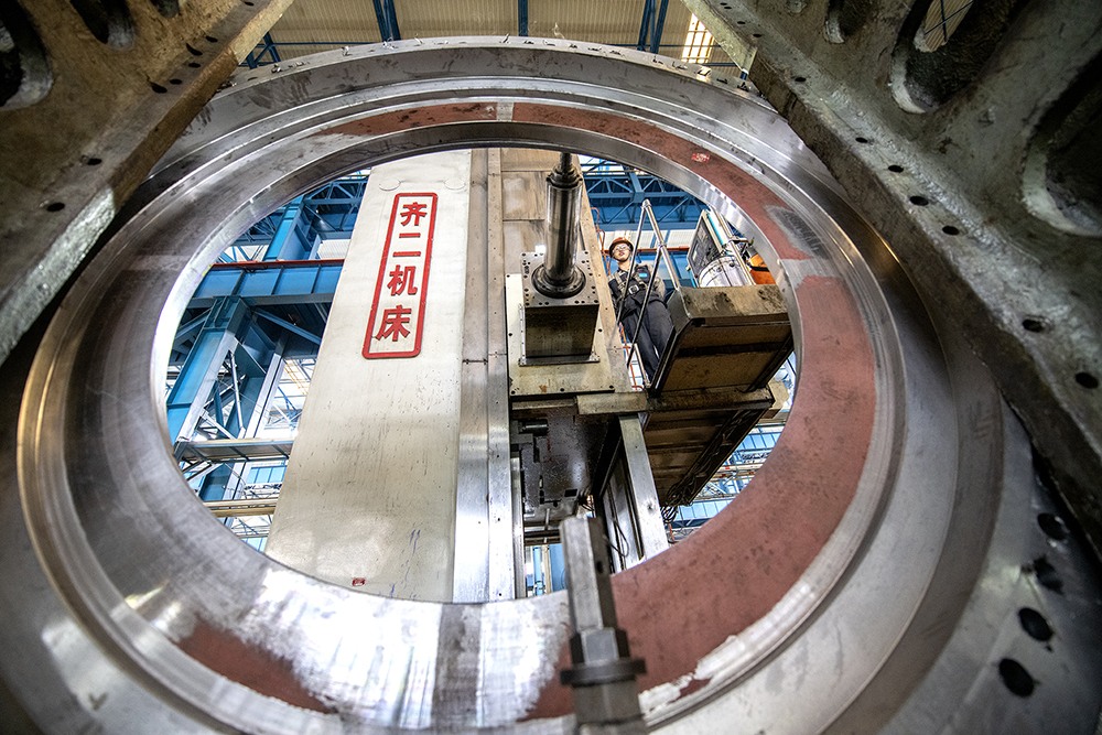 北方重工重大部件分廠員工正在加工盾構機用旋轉環(huán)部件