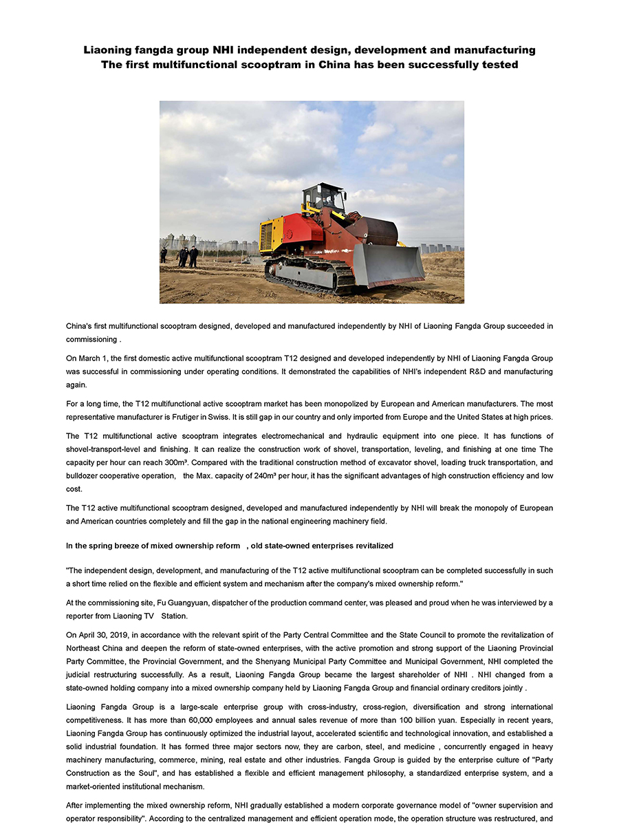 Liaoning fangda group NHI independent design, development and manufacturing The first multifunctional scooptram in China has been successfully tested